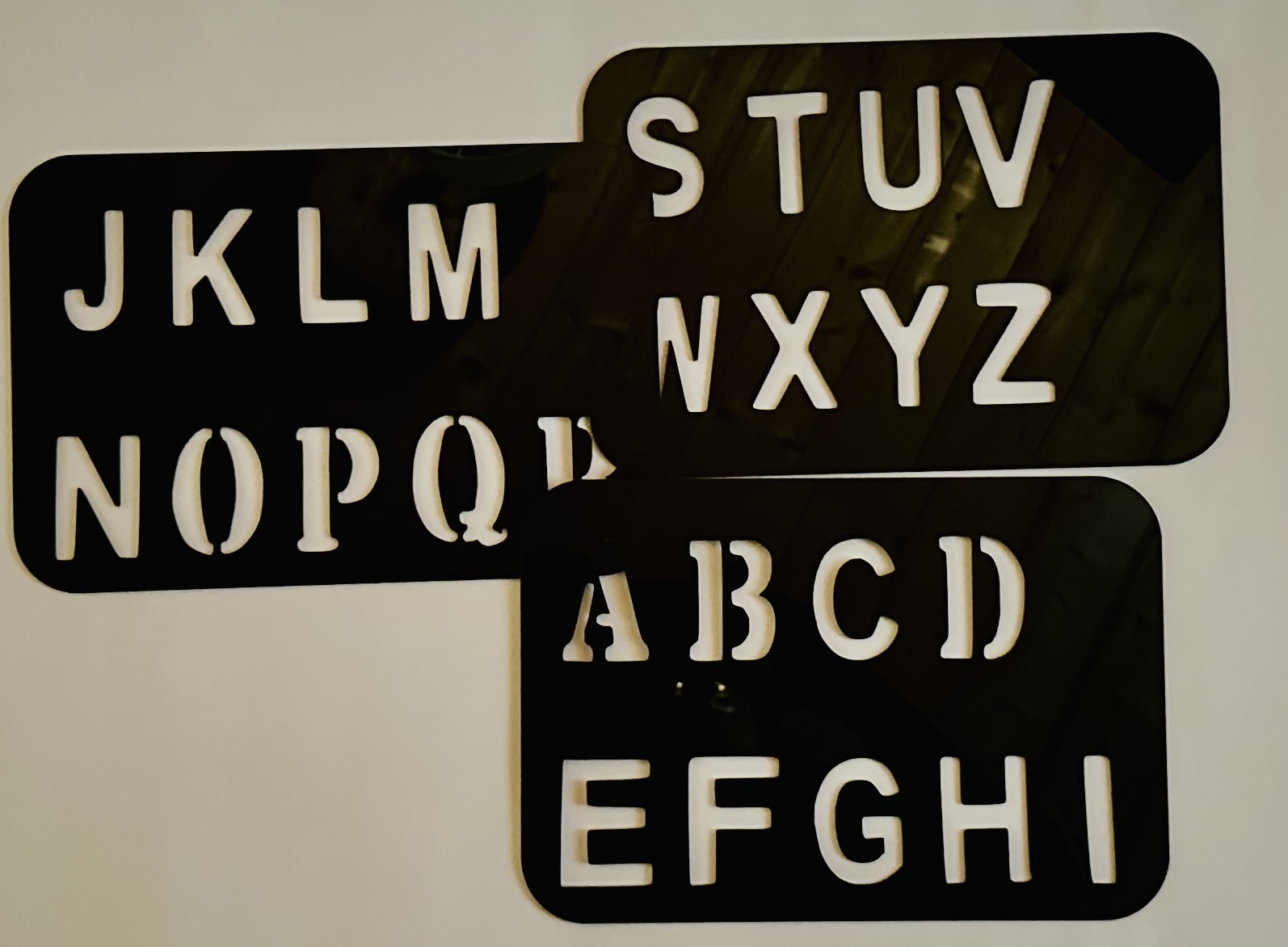 English letters dispersed over 3 boards for easier access to accommodate difficulty with motor.