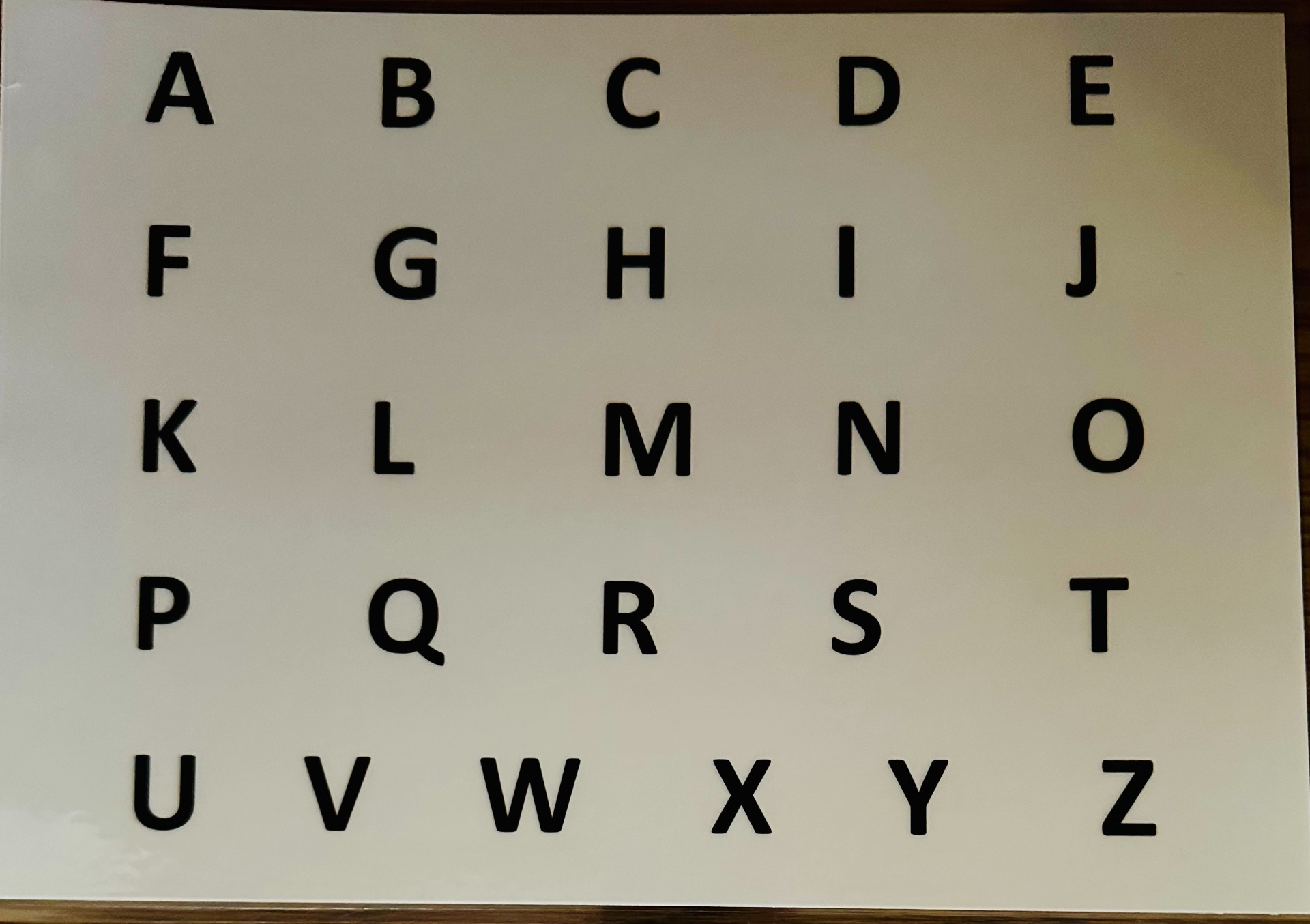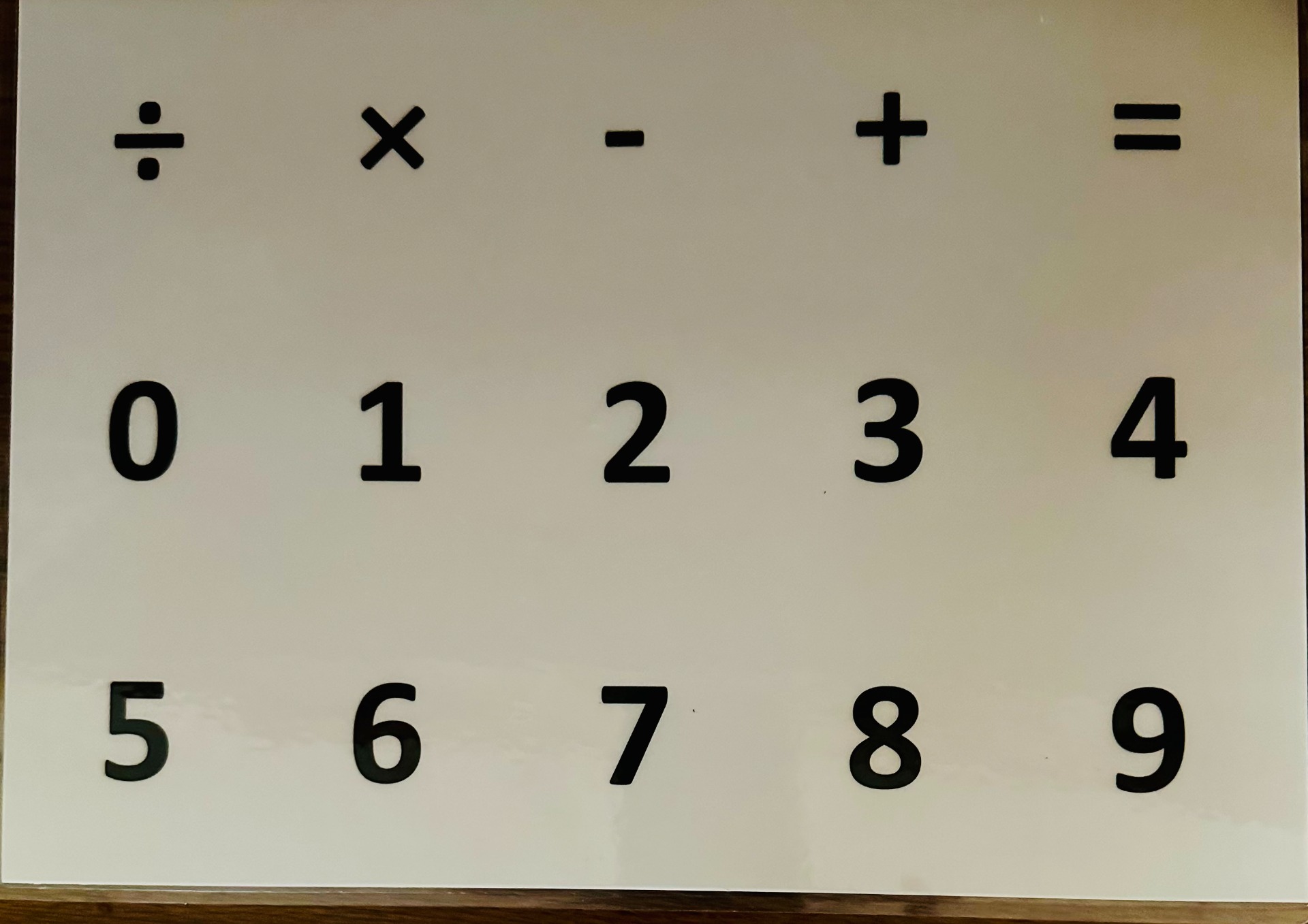 26 letter english letterboard with numbers and math signs on back.