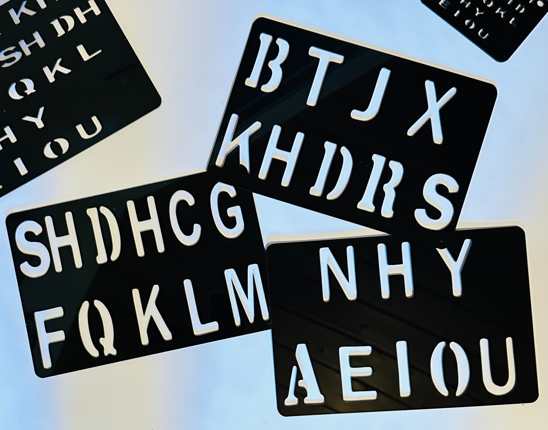 Extra large letters divided over 3 boards to assist difficult motor.