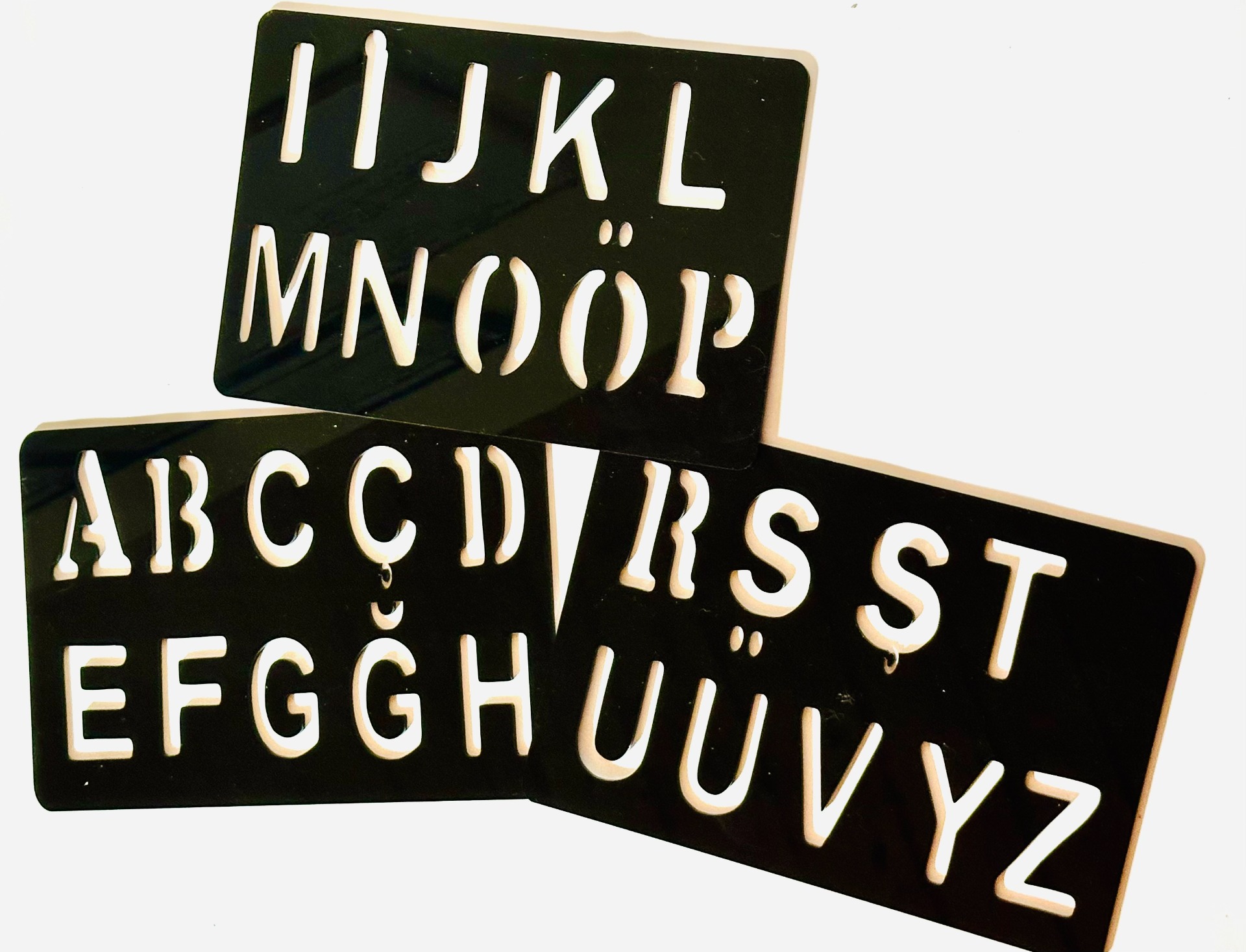 Extra large letters divided over 3 boards to assist difficult motor.